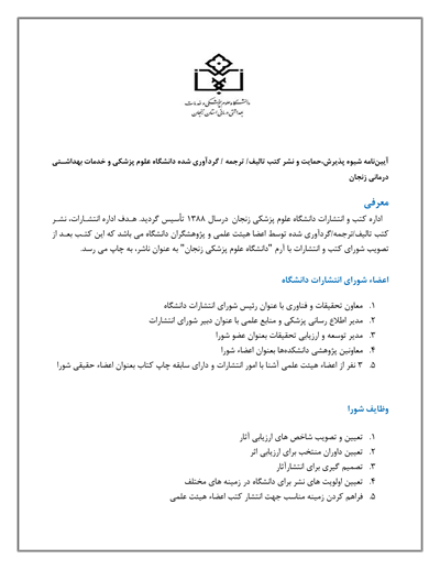 آیین نامه نشر کتاب توسط انتشارات دانشگاه علوم پزشکی زنجان